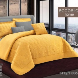 سرویس لحاف روتختی پنبه دوزی کلاسیک از برند اکوبلا مدل Spirit کد 002 رنگ ترکیبی خردلی طوسی دو نفره هشت تکه